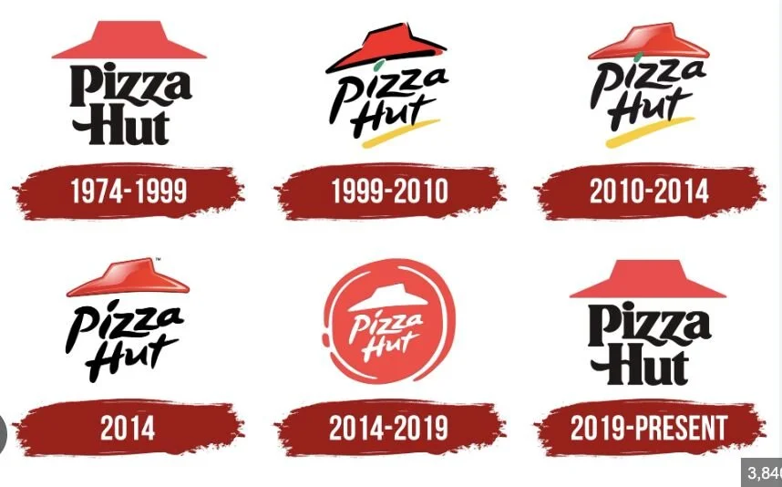 Corporate logos can run like fashion—fit a trend and time, but always come back around. Take Pizza Hut, for example. The original red-roof logo was first created in 1974, and the roof of the brick-and-mortar buildings matched the red roof in the logo. But as you can see, this brand has reinvented itself to stay relevant its entire existence. The 1999 version—is VERY on-trend in terms of typography, treatment, and color of the turn of the millenium. It has a similar energy to the FRIENDS tv sitcom logo, in my opinion. Now, over the years we only PIVOTed (see what I did there since FRIENDS was mentioned?) slightly with simple refreshes. But, in the year 2025—people are loving throwbacks and nostalgia, and the brand returned to it’s original logo.